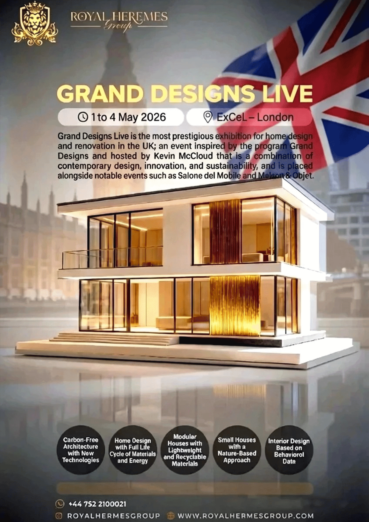 Royal Hermes Group utilizes Grand Designs Live London as a strategic showcase to present rebranded international products to a design-driven UK audience. As one of the most influential exhibitions in architecture, interiors, and lifestyle innovation, the event provides direct access to architects, developers, retailers, and high-value consumers. Through a curated exhibition presence, Royal Hermes Group demonstrates how global products are transformed into market-ready UK brands, aligning design excellence, compliance, and consumer expectations. Our participation strengthens brand authority, accelerates commercial partnerships, and positions our portfolio at the intersection of innovation, design, and scalable market growth.