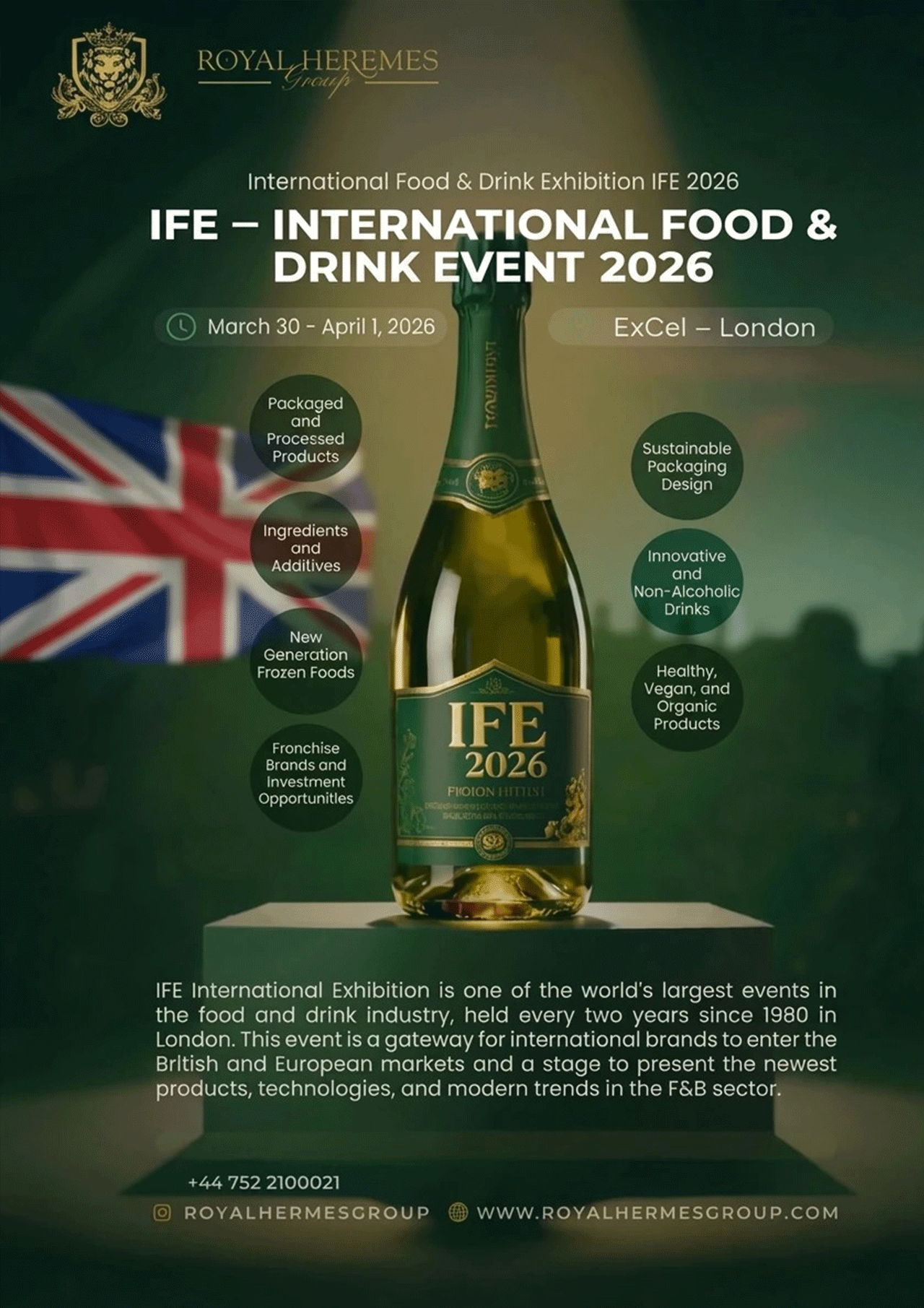 Royal Hermes Group utilizes the International Food & Beverage Exhibition London as a strategic gateway to introduce and scale rebranded international products within the UK market. This exhibition attracts global producers, distributors, retailers, and category buyers, creating a high-value environment for commercial alignment and market entry. Through a controlled and professional exhibition presence, Royal Hermes Group demonstrates its capability to transform international products into compliant, market-ready UK brands with strong consumer appeal. Our participation strengthens brand trust, accelerates distribution partnerships, and positions our portfolio for sustainable growth across the UK food and beverage sector.